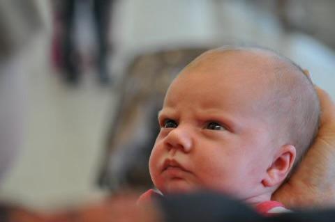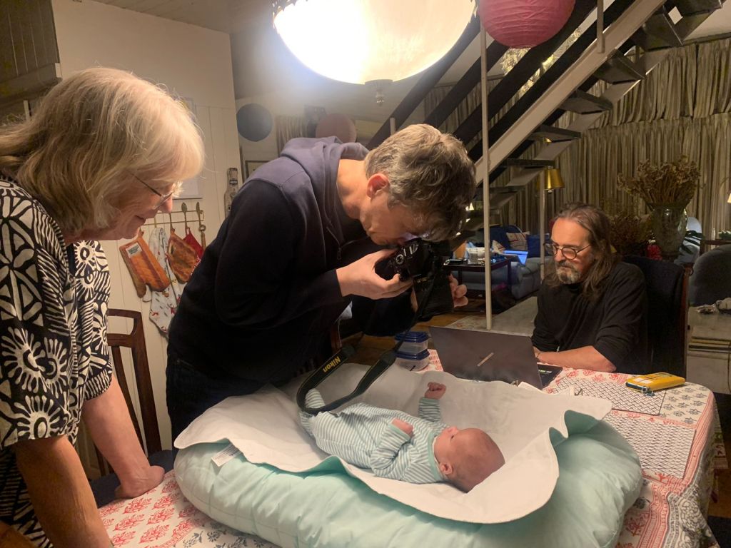 Taking photos for official paperwork. Eyes to the front, white background. Hello. The applicant is one month old! Good job Bren.