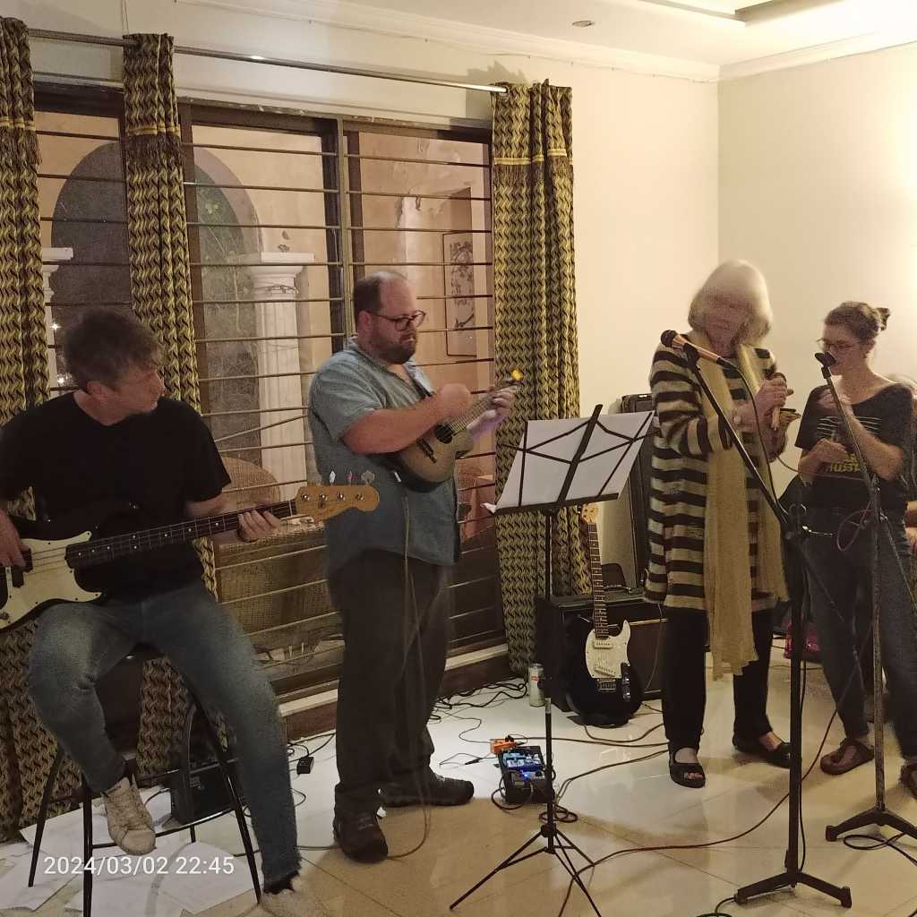Bren’s band, “The Buffs”  played for a special event at the International Club. It was a really nice night. I heard quite a few compliments on Bren’s bass playing, but I hesitate to pass them on….don’t want to swell his head!! Haha. I did get to sing a song with them. It was fun. We are starting to get to know a few folks there, Bren and Sof’s friends. Lulu, Kash, Dave and neighour Luke….nice.