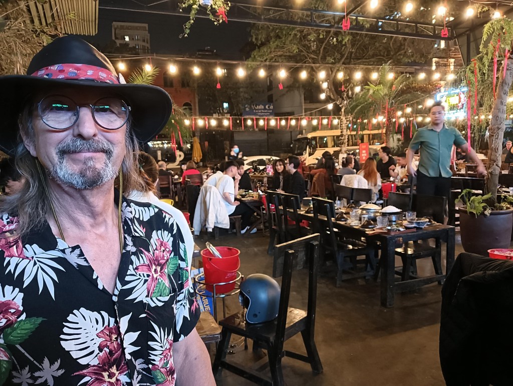 One other item Narda didn’t mention was our eating life. We are not foodies, those people glued to silly TV-reality(?) shows of annoyingly and obnoxious facial-contorted people with some steaming crap in front of them as they make orgasmic squeals and assure us we can cook like them. Or those equally annoying touring foodie people showing us street food in some far-flung country like Vietnam. We are not very adventurous. I live in a constant paranoia of food. Trying to control diabetes with a low-carb diet (totally failure when we travel) or being sure they are not slipping some mystery road-kill into my allegedly vegan-blessed meal. I don’t trust anyone. Not drinking alcohol since 2005 (have cirrhosis of the liver) I must be sure they don’t slip alcohol into my drinks too. Why can’t everyone just be normal like me? I am like a paranoid royalty, having Narda test whatever I am about to eat to see if it has something forbidden in it. Meat, sugar and carbs are poison in my brain. Of course, coffee in Vietnam has that sweet, condensed cream in it. I will say coffee with milk and no sugar. Still get the sweetened cream they just don’t add sugar on top. My morning readings are two-three points higher than when I can control my diet in Australia. Which is not good. Looks like I will be on insulin when we get back to Australia. Really pisses me off. Hopefully, AI will find a cure for diabetes soon. Oh, and no ice too. Now going into India, we won’t even eat salads at restaurants as they may be washed by contaminated water. Anyway, all I wanted to mention was that we found a great restaurant across from our hotel. A seafood place that is so packed we can barely find a table. The waiters run from customer to customer. See the little clip below. The food was good and cheap. Of course, I am stuck with eating a lot of noodles with vegetables and so far in a month of eating we haven’t gotten sick though my sugars are through the roof. We haven’t really done street food. So, if you were excitingly anticipating a blog about the wonders of street food in Vietnam, I am happy to disappoint. Cheers!