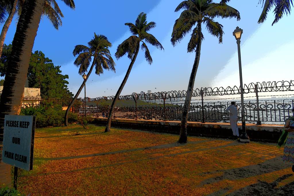 Joggers Park was a five-minute walk from our homestay. It is along the shore and we could see downtown Mumbai as well as some massive bridge going up and out to somewhere. Lots of folks go here to run, or sit (that is what we did ) and watch sunsets and probably sunrises though we didn’t see them as we were asleep and the sun most likely doesn’t rise here.