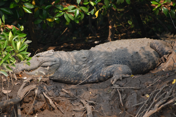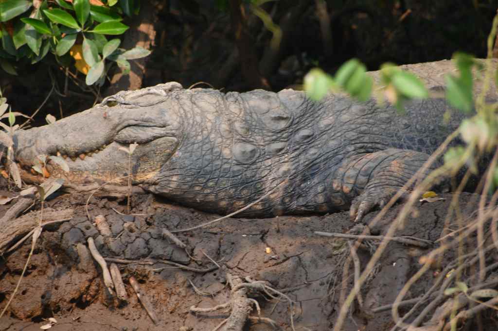We did see this enormous croc laying on the shore. (notice Narda’s reaction)