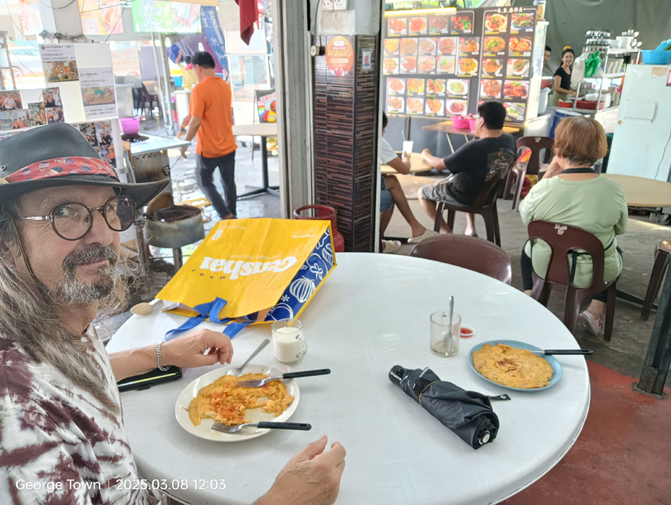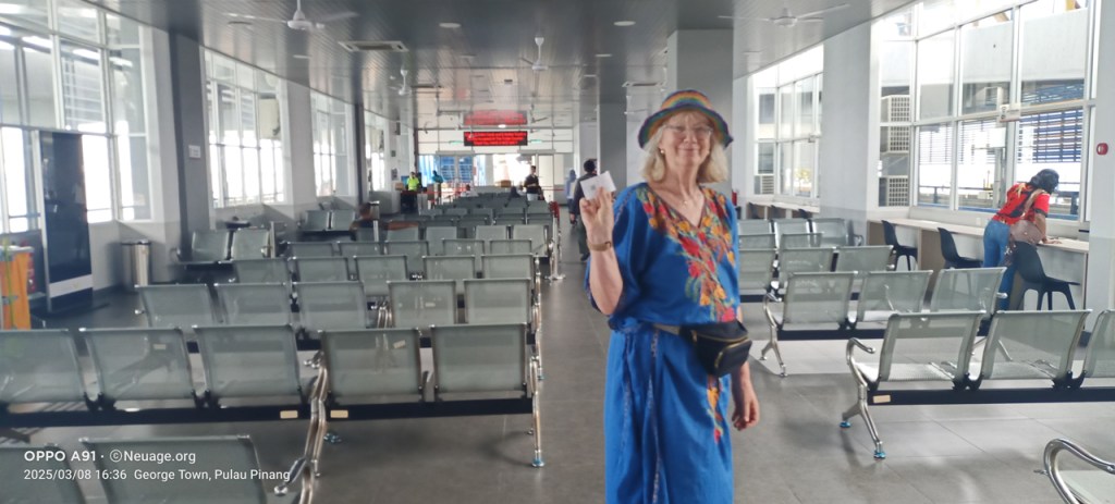 We had planned to take trains to Penang but we were so buggered that we booked a last minute flight on Batik Air, which was fine, apart from the bumpy landing. So we spent the whole day walking around the airport. I was so tired that I slept for 1 ½ hours on a row of somewhat padded chairs. Slept solid, with Terrell, my guardian angel watching over me.