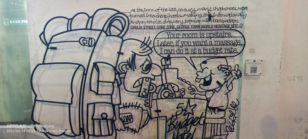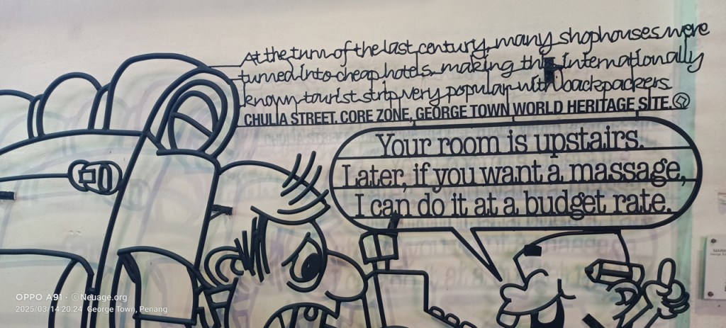 Probably the most viewed stuff in Penang is the street art. Urban murals throughout the UNESCO-listed historic district depict life & culture in Penang. As you would know, The Lithuanian artist Ernest Zacharevic is perhaps most commonly associated with Penang’s street art. He came to George Town on a tourist visit and was surprised (and no doubt relieved) that he could paint his murals in the city without any official interference. Of course, my son thought the same of Adelaide when he was in the first ‘creative’ years of adolescence but unfortunately Adelaide did not follow good old Ernest’s wall art philosophy.