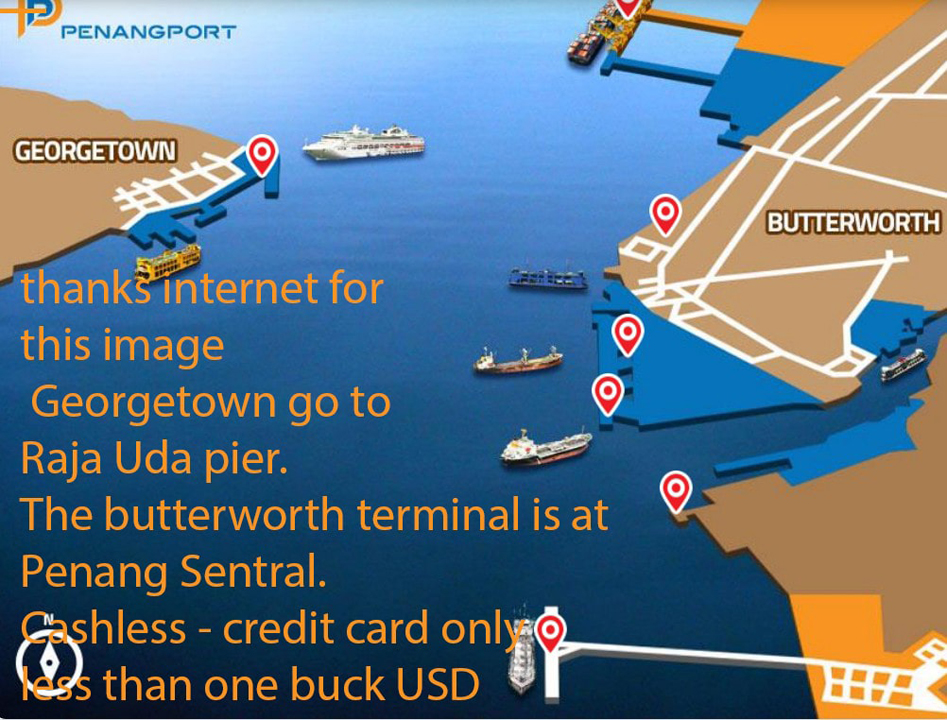 Then there was the expensive ferry ride to Butterworth which set us back. 91c each.It was a nice scenic ride. At the other end you walk into a shopping centre where I bought some PJs . Then had lunch at Subway.
