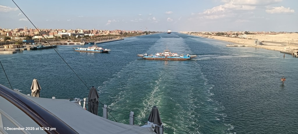 “Crossing the Suez Canal” this was what we have been looking forward to for months and it was a great trip. See our YouTube clip. https://youtu.be/BbhvqJVgusY?si=t2FPLSUPPZHgcxBm