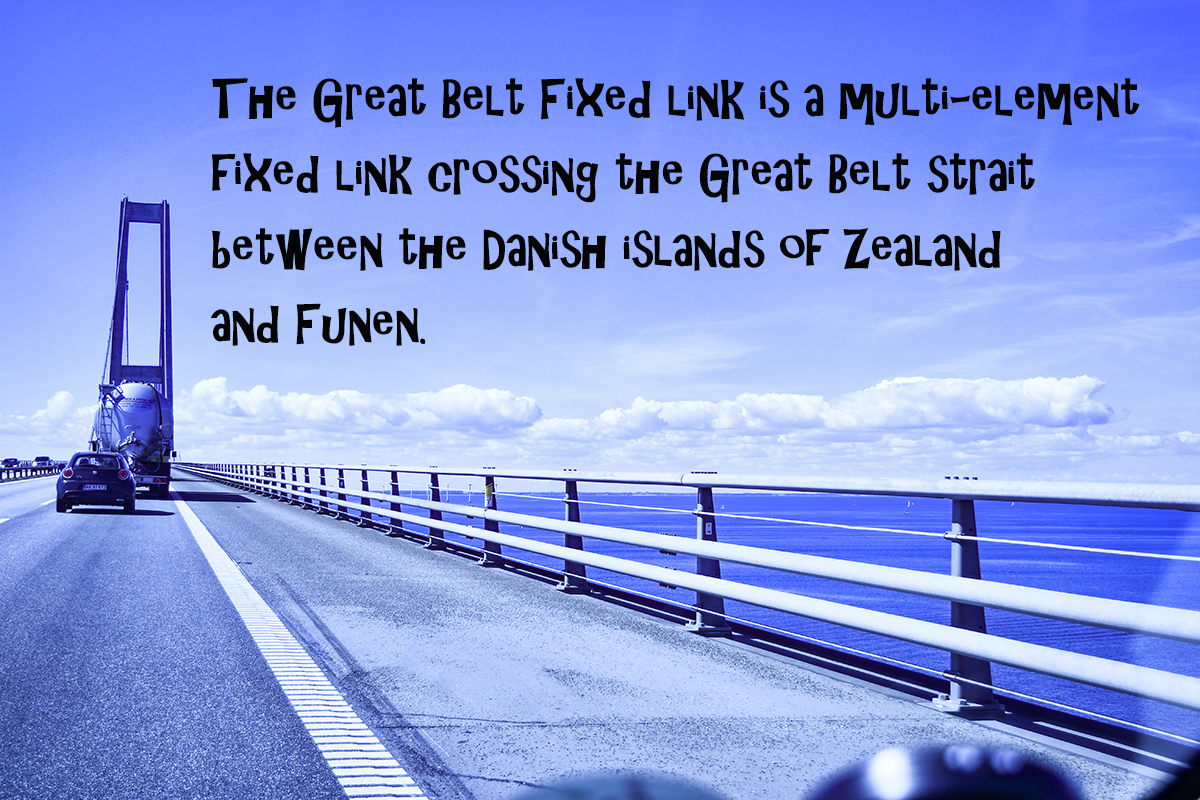 The Great Belt Fixed link links between the islands of Zealand and Funen. It costs $36 USD